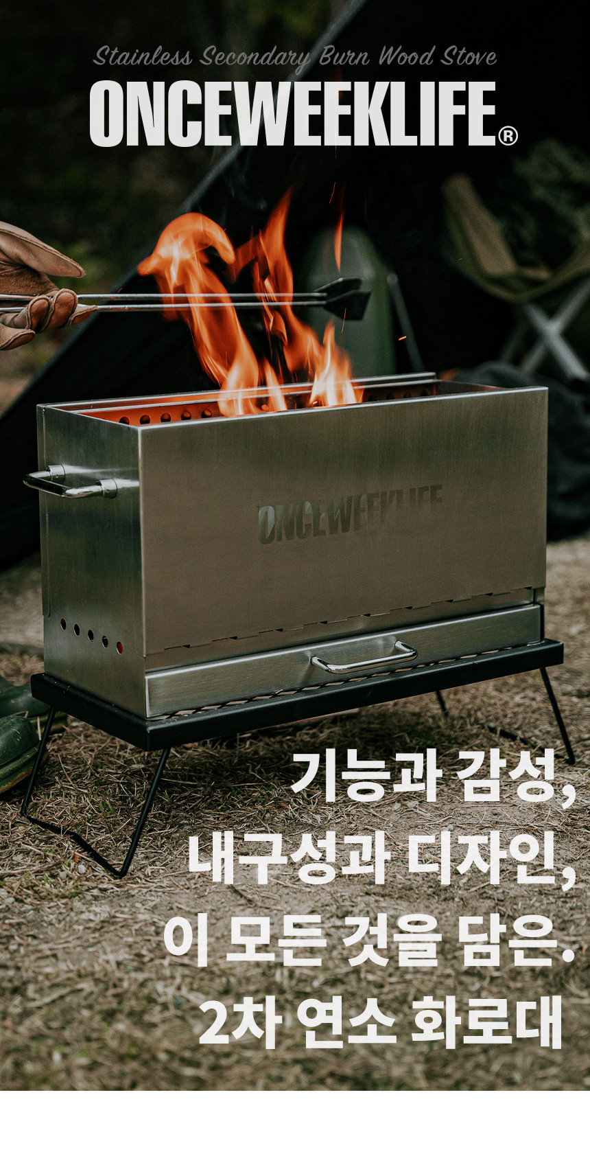 원스위크라이프 대형 이중연소 캠핑 화로대 불멍 난로 바베큐 그릴 우드 스토브 > 바비큐/화로대