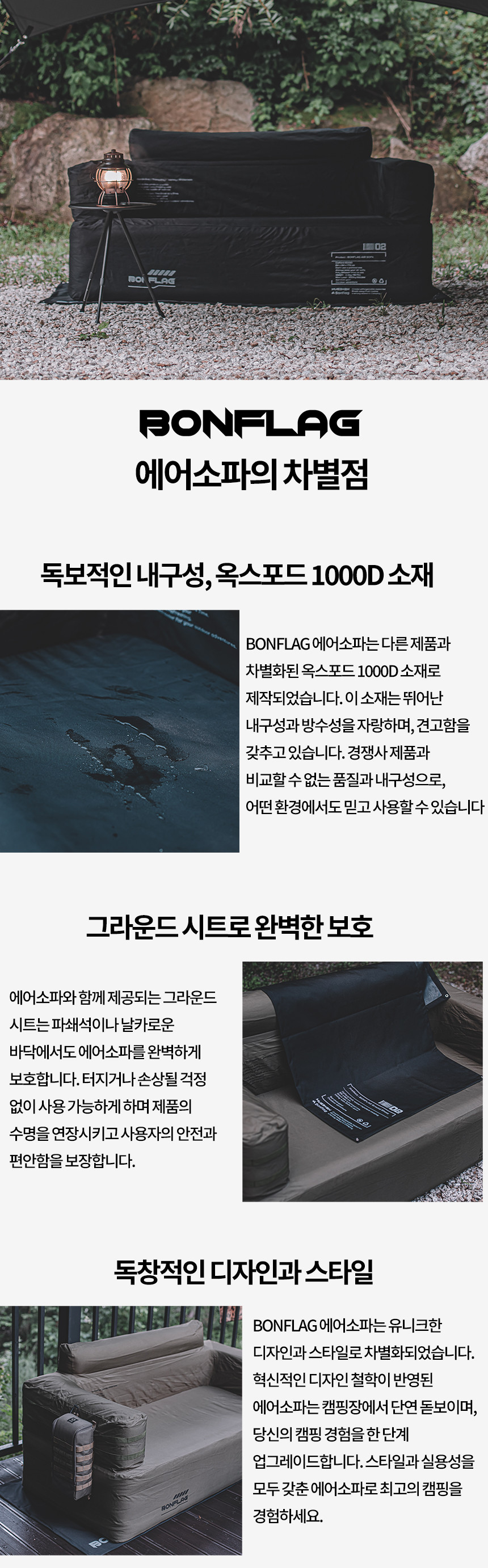BONFLAG 캠핑 에어쇼파 에어소파 의자 2인용_올리브그린 > 침대/의자